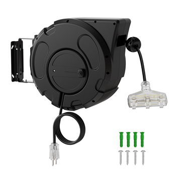 Chúng tôi ổ cắm nhiệm vụ nặng nề xoay tự động tua lại treo dây mở rộng điện 3 ổ cắm cáp có thể thu vào Reel với ngắt mạch